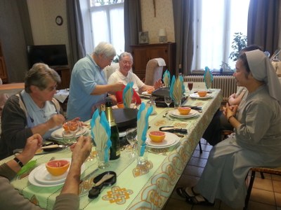 La comunidad de Beauraing es una comunidad internacional con cuatro nacionalidades diferentes. Es por eso que pude integrarme naturalmente en esta comunidad y experimentar el propósito perseguido por el propuesto Ephata : hacer un solo cuerpo.