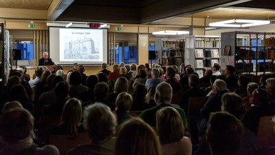 M. Philippart, spécialiste de l'histoire et de l'architecture de la ville de Luxembourg, a su fasciner ses nombreux auditeurs, réunis dans le nouveau CDI (bibliothèque) du Fieldgen.
