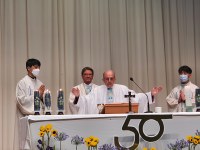 À l’occasion de cet anniversaire, l’école Sangji a organisé une messe pour rendre grâce au Seigneur et pour remercier le fondateur et les fondatrices, ainsi que les bienfaiteurs. Cette Eucharistie a été célébrée par Mgr John Chrisostom Kwon, évêque du diocèse d’Andong et Mgr  DUPONT, qui avait été le premier évêque  de ce diocèse.