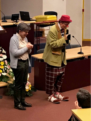Le 10e anniversaire de la CORREF était célébré dans une soirée gaie et joyeuse où le vice-président, le Père Daniel Federspiel, faisait le clown de façon très professionnelle et à partir du thème de l’assemblée.