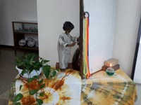 Nous avons concrétisé la parole : « Voici, je me tiens à la porte, et je frappe » (Ap,3,20), en réalisant des chaînes avec des tissus de différentes couleurs que nous avions attachés à la poignée d’une porte.