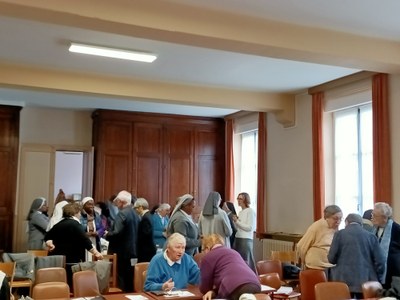 A Bruxelles : Ce fut un temps de richesses partagées entre instituts de petites ou grandes tailles, congrégations anciennes ou récentes. Nous avons constaté combien le Seigneur est à l’œuvre au milieu de nous : à travers appels et réponses différentes, il surgit une harmonie évangélique en adéquation avec un monde en mutation.