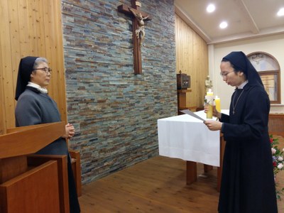 Cette année, il n’y avait ni profession  perpétuelle, ni  premiers vœux, mais pendant l’office du matin, Soeur Margaritta Kim, jeune professe, a renouvelé ses voeux pour la quatrième fois.
