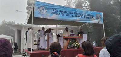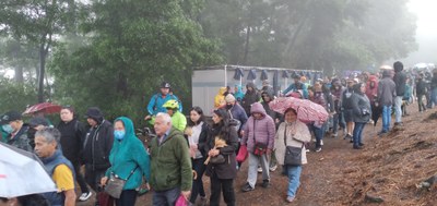 Nous nous sommes unies aux milliers de personnes qui ont fait le pèlerinage à la colline de la Vierge. Sous la pluie, a été célébrée et vécue l´eucharistie.