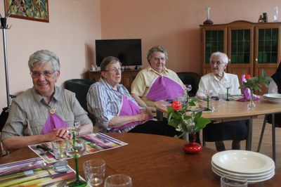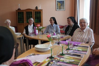 A la Maison de l'Accueil, elles ont participé à une messe d'action de grâce suivie d'un repas convivial et d'une prière à Notre-Dame. Dans l'après-midi, elles se sont rendues au Clairval pour rejoindre leurs compagnes à mobilité réduite. Joyeuses retrouvailles avec partage de nombreuses anecdotes du temps de leur noviciat et de leurs premières années en communauté !