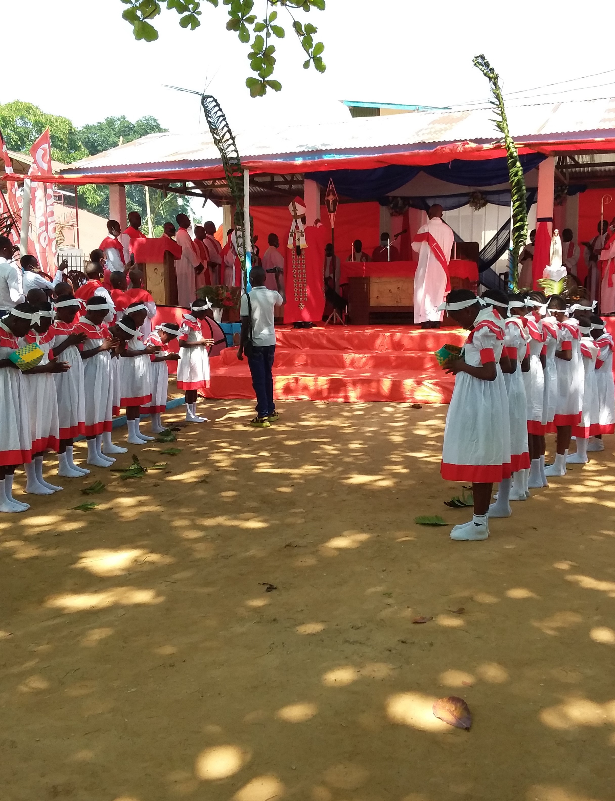 Après la célébration eucharistique, tous les jeunes de chaque paroisse ont défilé devant l'évêque et un repas festif et quelques danses ont clôturé la journée.