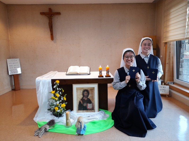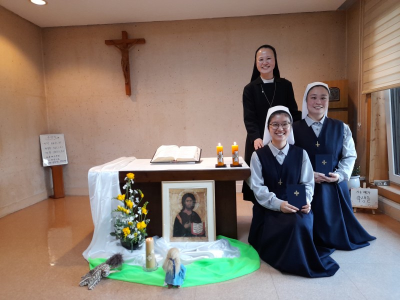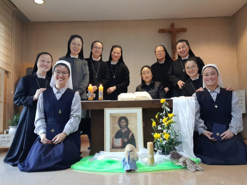 Pour soutenir nos jeunes novices, sœur Thérésa Jo, notre Supérieure provinciale et nos soeurs venues des communautés de Séoul ont participé ensemble à la célébration de l’entrée au noviciat. C’était un temps de grâce et de bonheur.