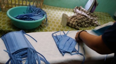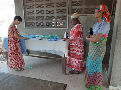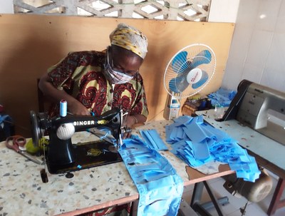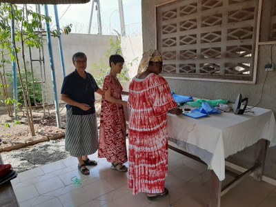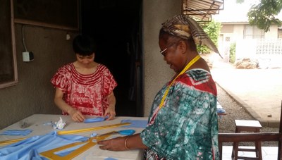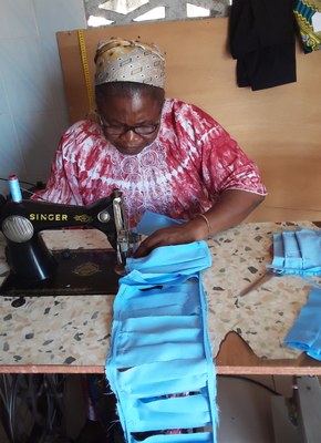 Dans cette situation, pour éviter une propagation massive de cette pandémie, des mesures sont prises, et en Côte d’ivoire entre autres le port des masques. Malheureusement ces masques ne se trouvent plus dans les pharmacies de la place. Alors, pour manifester notre solidarité avec les mesures prises par le gouvernement, nous nous sommes engagées à apporter notre part dans cette lutte. Ainsi, en collaboration avec l’hôpital Jean Baptiste Vatelot, nous confectionnons des masques. Depuis deux semaines, avec du tissu fourni par l’hôpital Jean Baptiste Vatelot, l’atelier du centre Vatelot II s’active à confectionner des masques qui sont proposés aux malades et aux gardes- malades de l’hôpital.