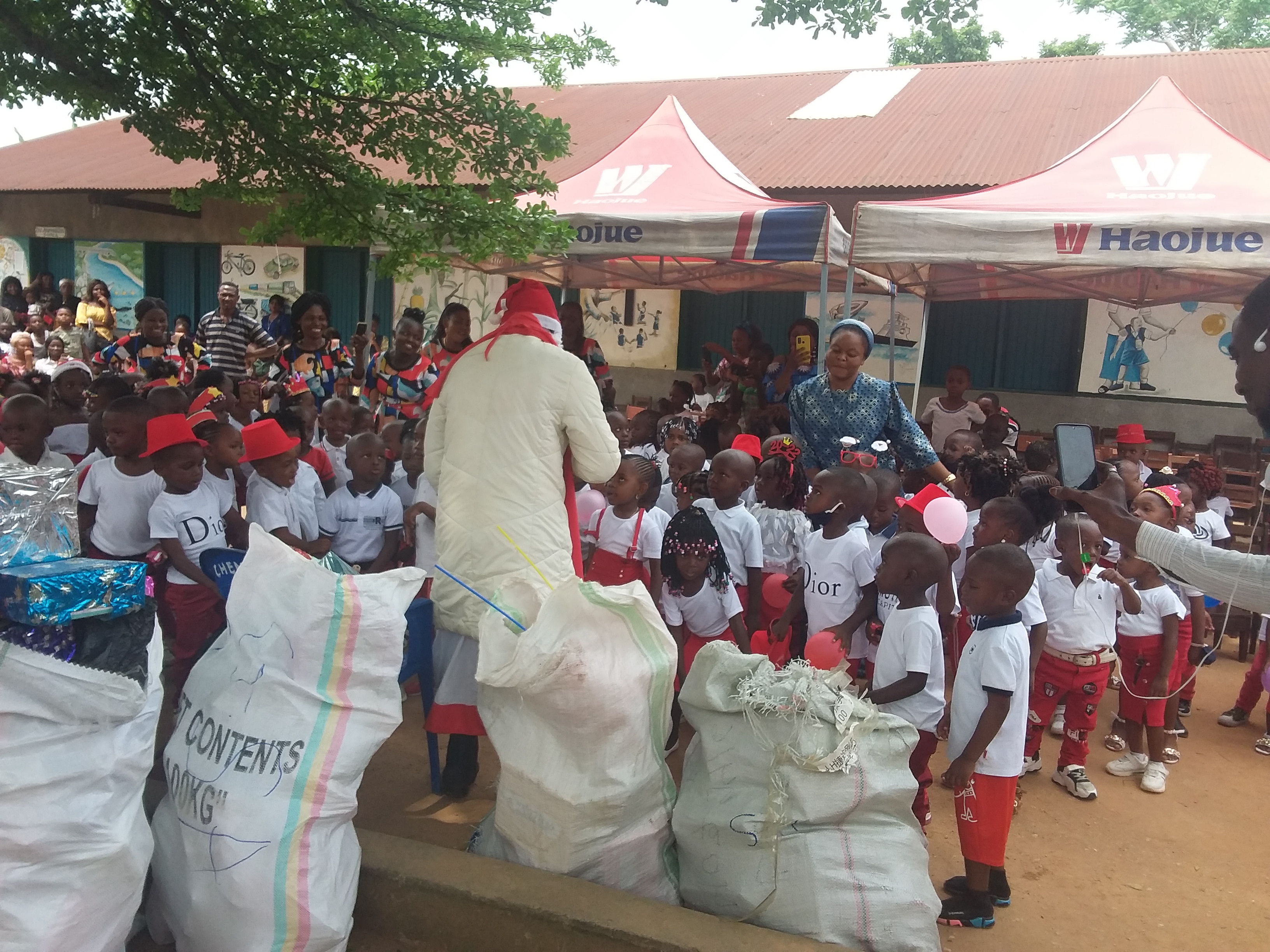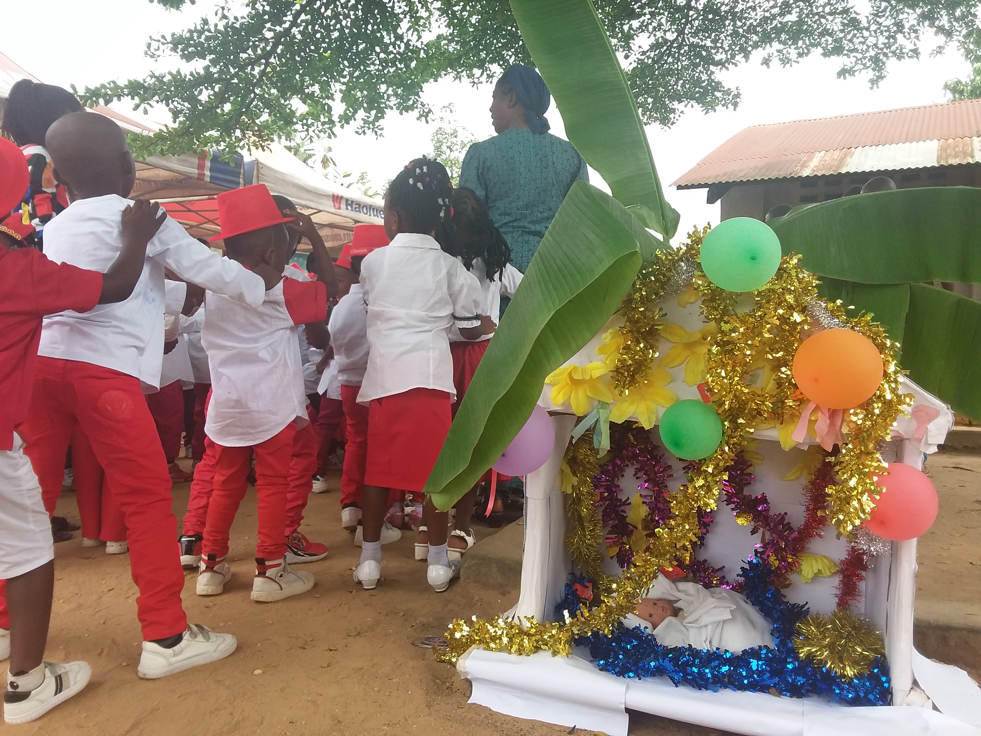 Plusieurs manifestations étaient à l’ordre du jour; défilé, scénettes, chants et danses y compris un repas festif avec les cadeaux du Père Noël ont agrémenté cette journée.