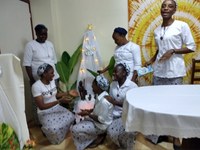 Le 24 décembre, c’était le grand jour de décoration. Nous l’avons fait déjà dans l’ambiance de Noël. Chacune était dans son coin. Les unes s’occupaient de la décoration de la chapelle, les autres de la communauté. C’était dans les chants et la danse que tout se passait.
