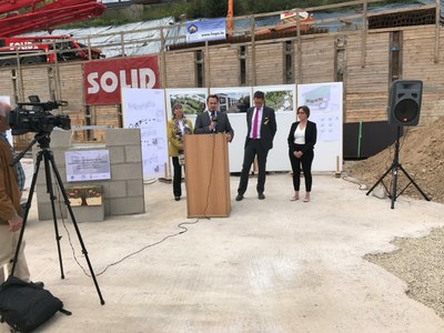 Ce mardi 26 septembre, la Fondation de la Porte Ouverte a fêté la pose de la première pierre de son nouveau Foyer à Eich, en présence du Premier Ministre et de la Bourgmestre de la Ville de Luxembourg. Y seront construits 4 pavillons pour accueillir 31 jeunes placés par le juge à cause de leur situation familiale en détresse.