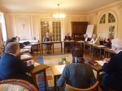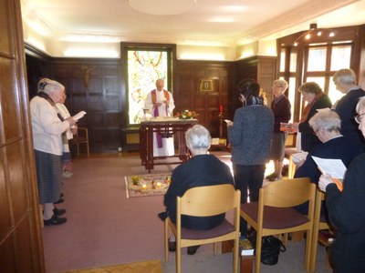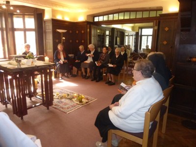 Le Père Jacques Weisshaupt s.j. introduisait la rencontre avec des pistes pour la prière selon le Père Jalics. A l'eucharistie, la prière spontanée des soeurs laissait transparaître une grande action de grâces pour leur vie dans la Congrégation et la mission qui leur était confiée.