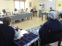 Nous avons terminé l’assemblée par un mouvement de reconnaissance très interférant : la Supérieure Générale remercie l’équipe du Patrimoine, la Supérieure Régionale remercie la Supérieure Générale et son Conseil, nos deux déléguées au Patrimoine, sr Régine et sr Michelle remercient la Supérieure Régionale et son Conseil et enfin la Supérieure régionale exprime la joie de la Région pour nos personnes ressources, tout en les rendant conscientes de la grandeur de la mission qui leur a été confiée. Sœur Sylviane remercie le groupe pour sa participation. On pouvait bien lire dans son visage la joie qui l’habitait au milieu de nous. C’est ça la Doctrine que nous aimons et dans laquelle nous grandissons et au sein de laquelle nous avons été envoyées!