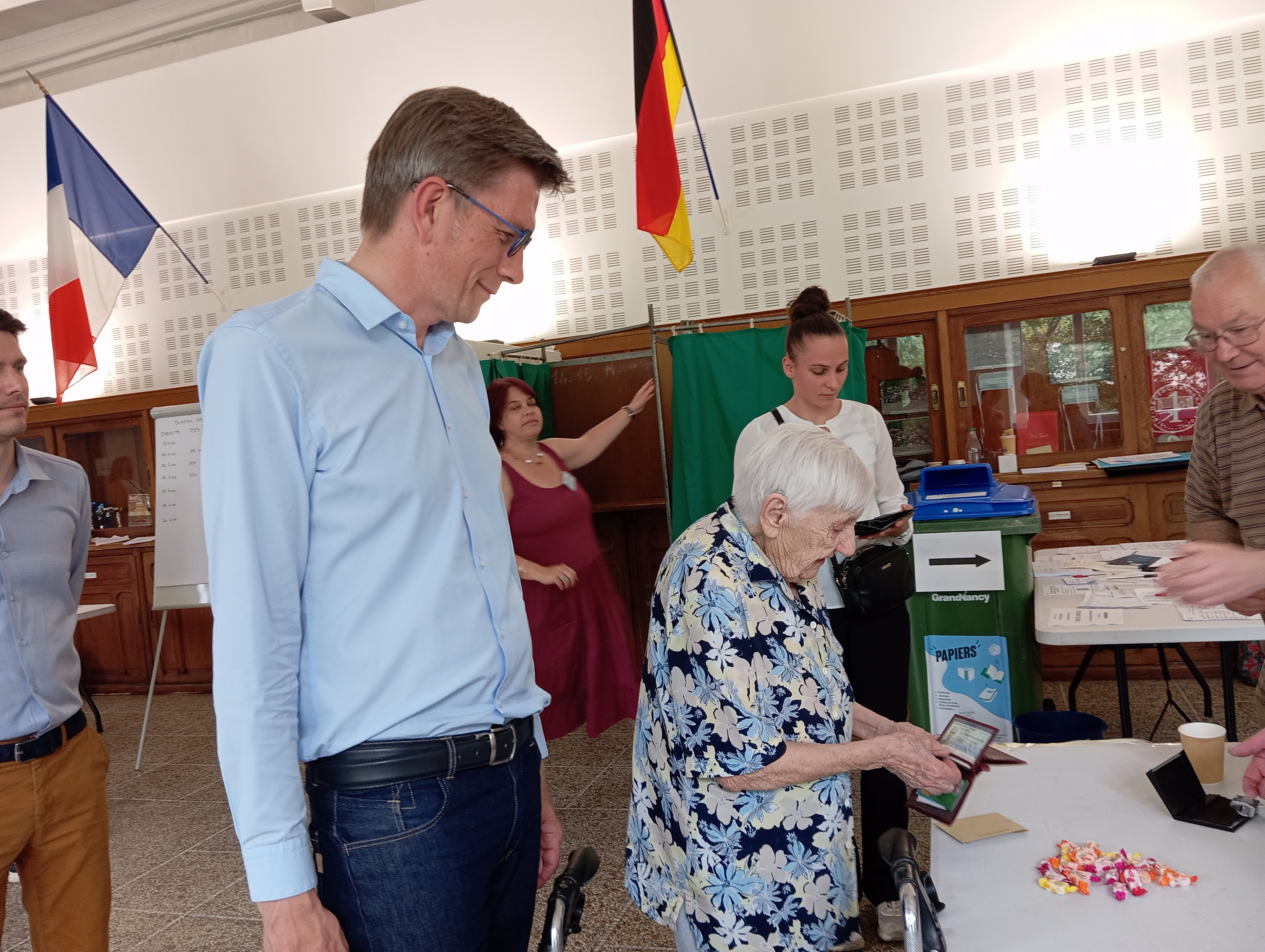 Au bureau de vote, elle rencontre M. Klein, maire de Nancy. Occasion pour elle de l'inviter l'an prochain pour ses 100 ans.