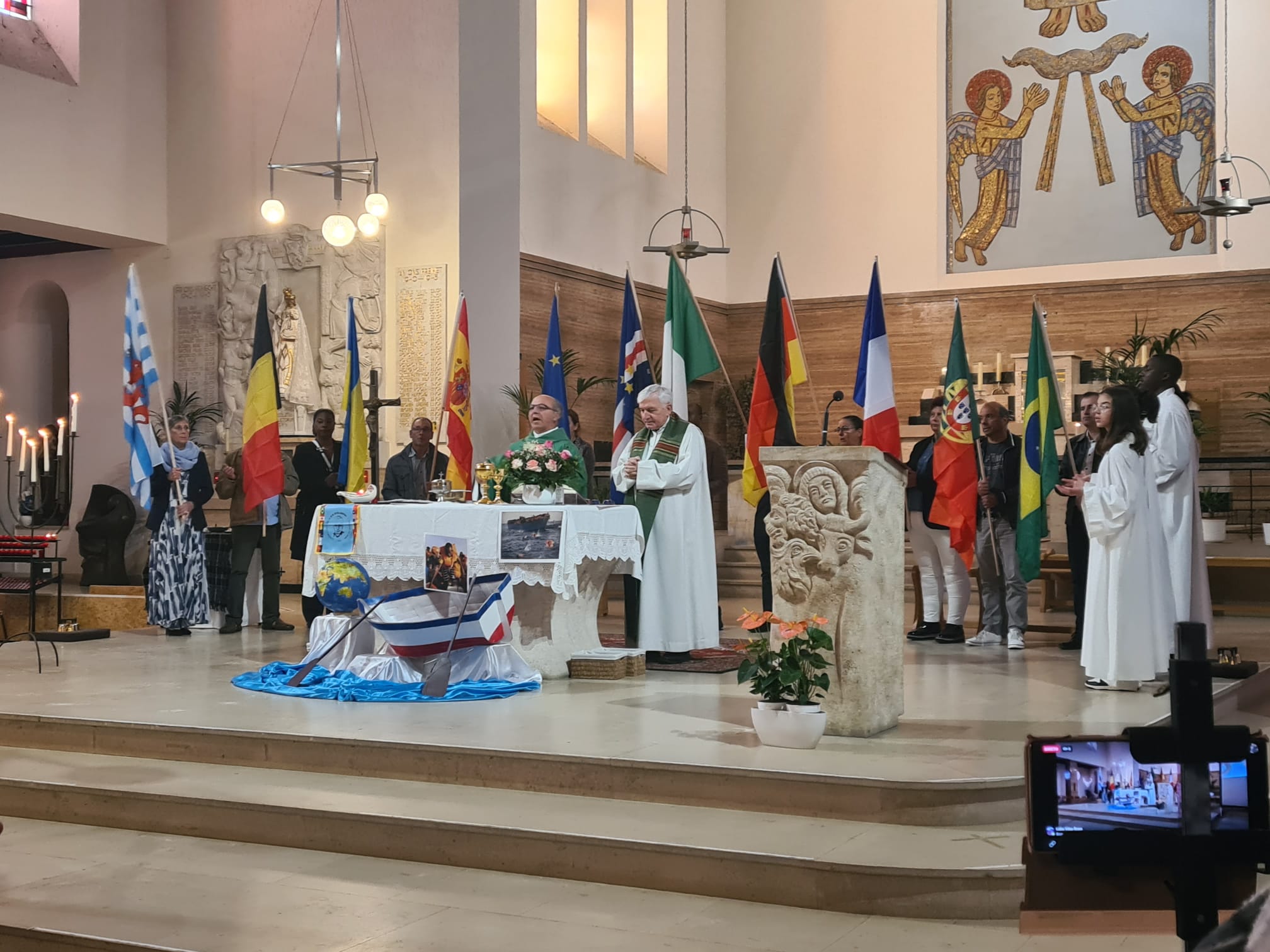 En première partie, une très belle Eucharistie a été célébrée en plusieurs langues. Après l’homélie Maha, musulmane syrienne et une famille portugaise ont donné leur témoignage. Au moment de la prière universelle, à chacune des intentions, un membre du comité d’organisation montait allumer une bougie sur le grand candélabre à sept branches. La prière proposée par le Pape François à cette occasion clôturait la célébration liturgique.