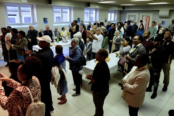 Après la messe, en deuxième partie, l’assemblée a partagé un verre de l’amitié à la mission catholique italienne. Des membres de différentes communautés avaient apporté des spécialités culinaires de leur pays d’origine. En marge de ce moment de partage, le groupe culturel capverdien « Terra Terra » a fait un peu d’animation permettant au public de découvrir le « batouk », une musique folklorique du Cap-Vert.
