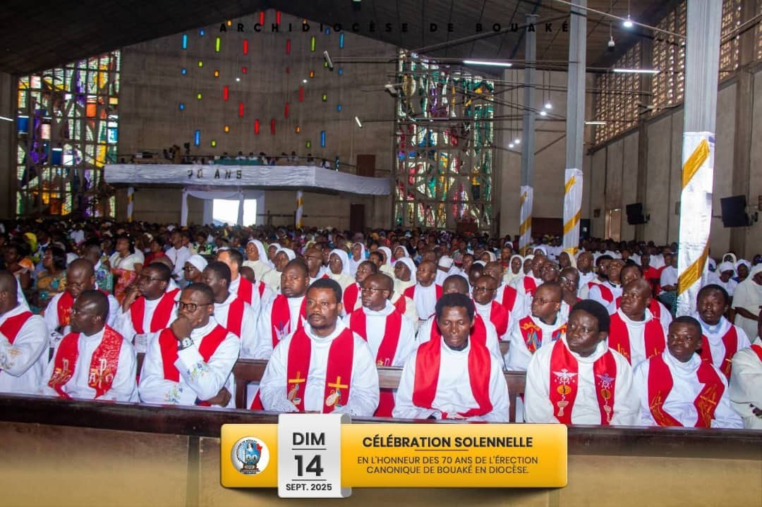 L’Archidiocèse de Bouaké a célébré avec ferveur, le 14 septembre 2025, en la Solennité de la Croix Glorieuse, le jubilé de 70 ans de son érection canonique. Plusieurs autres événements ont marqué cette belle journée diocésaine.