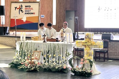 Le dimanche 12 octobre, environ 620 personnes, dont 455 jeunes de 22 paroisses, ont participé à la cérémonie d'inauguration et au festival de la jeunesse des « Journées mondiales de la jeunesse de Séoul 2027 » du diocèse d'Andong.