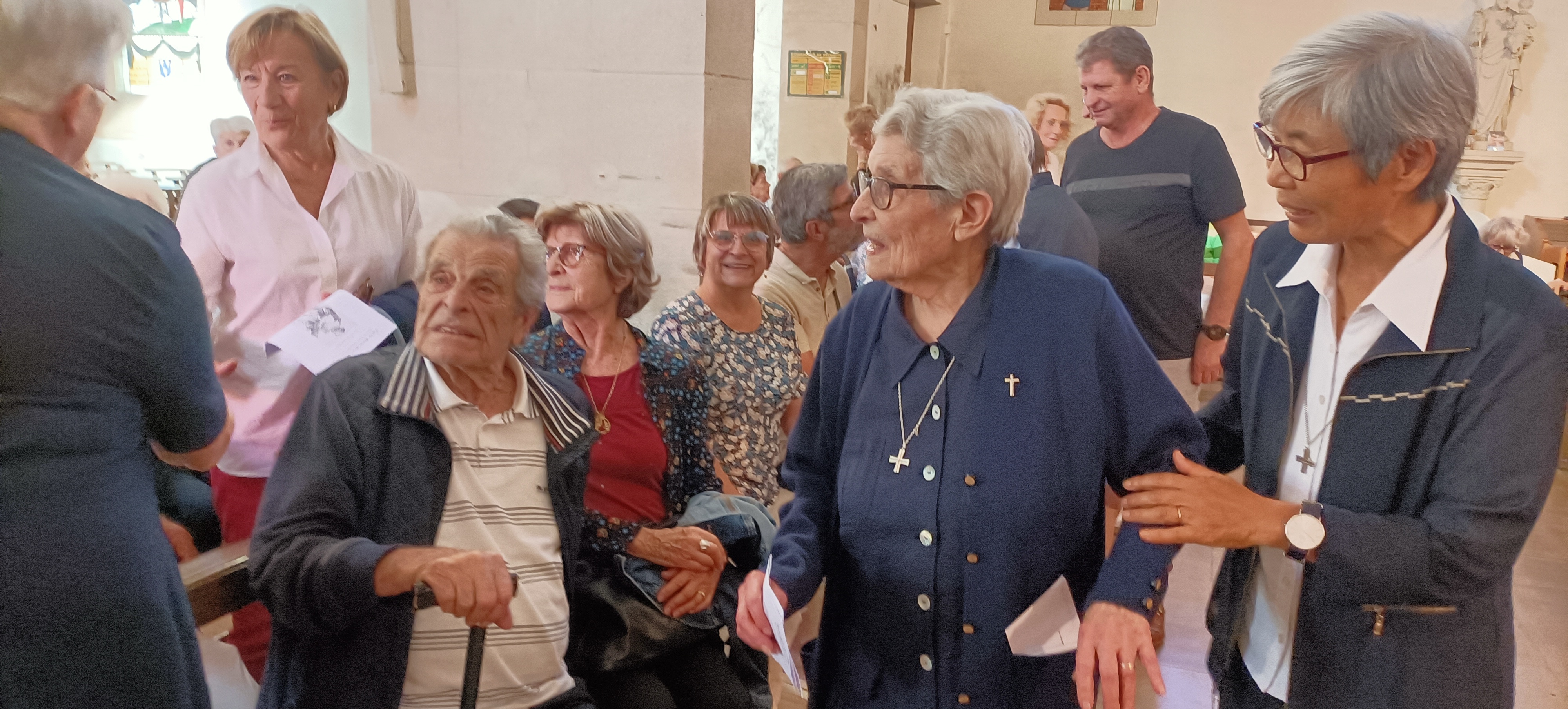 L'eucharistie s'est terminée avec les remerciements  des membres de Foi et Lumière (handicapés), des paroissiens, de Sr Marthe. Sr Raymonde a exprimé son bonheur d'avoir vécu toutes ces années au milieu d'eux.