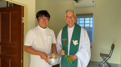 Ce jour-là, nous avons organisé une cérémonie de bénédiction simple en présence de Mgr Kike, du curé de la paroisse, des sœurs, ainsi que du personnel, des enseignants et des élèves.