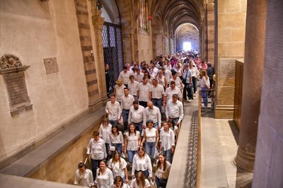 La procession mène dans la crypte de la basilique où se trouve le tombeau de Saint Willibrord, second patron du pays, moine bénédictin anglo-saxon et fondateur de l’abbaye d’Echternach, honoré pour son don de guérir les maladies.