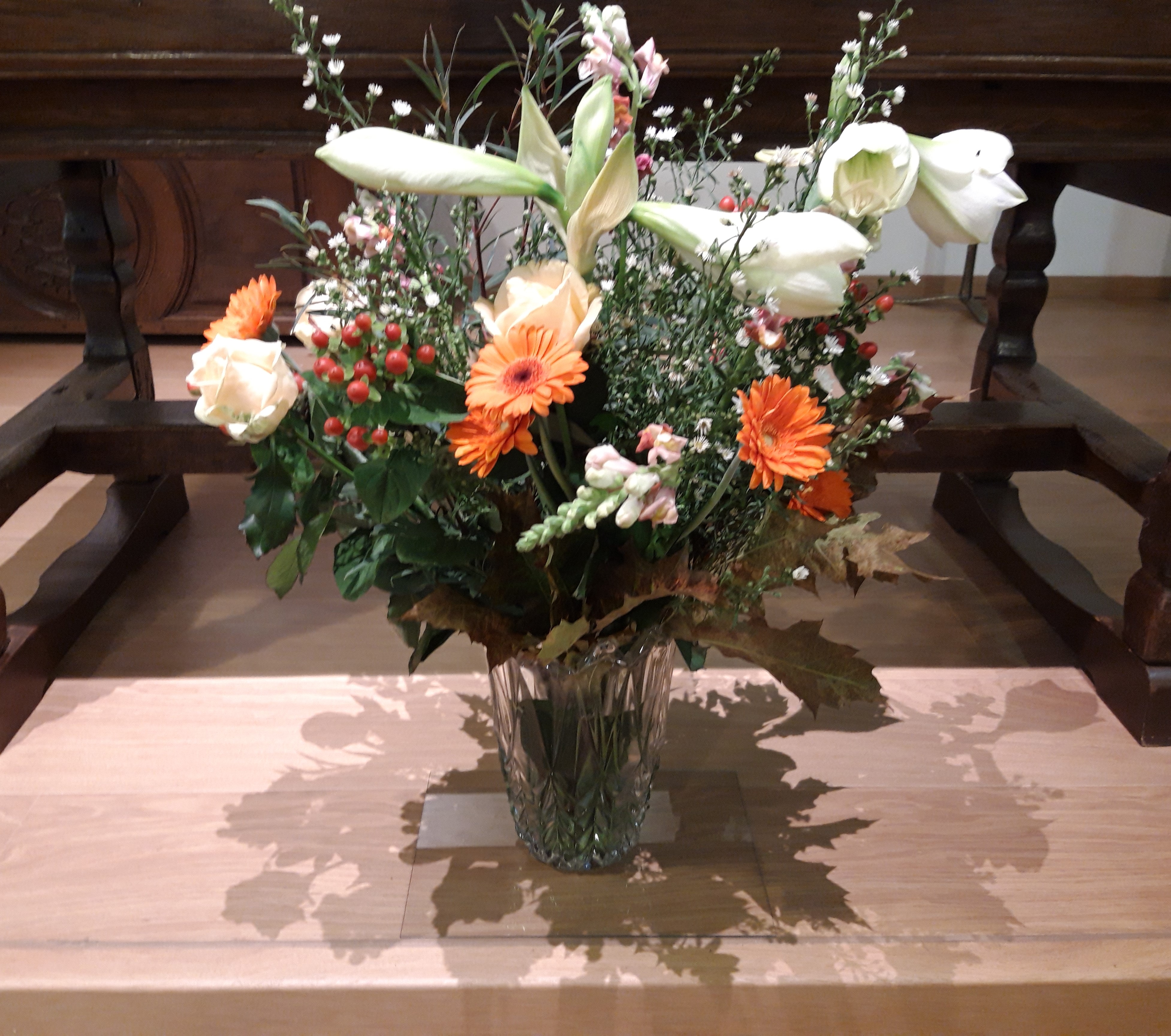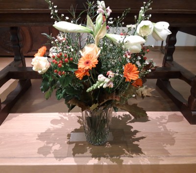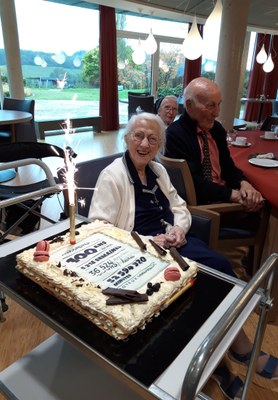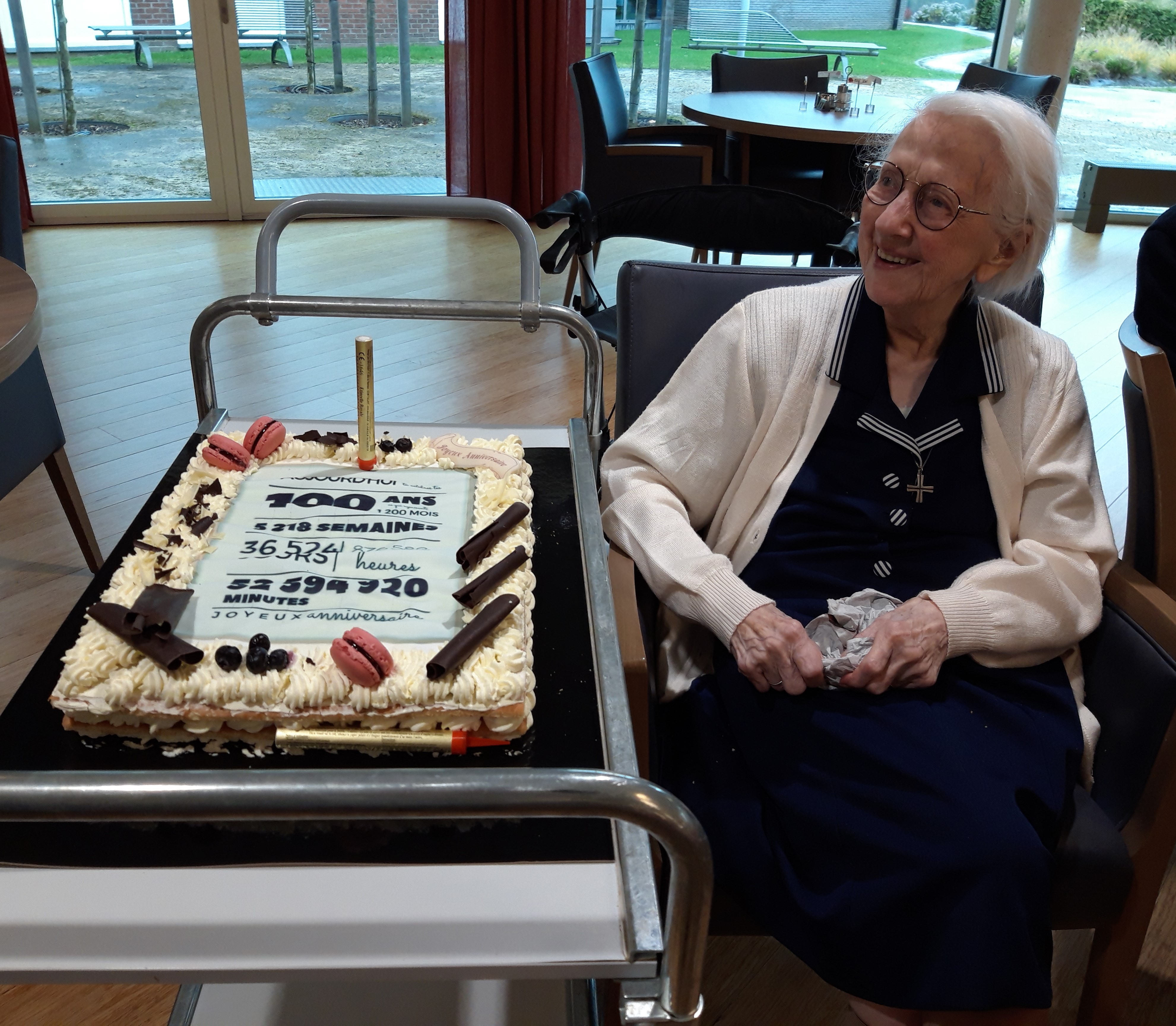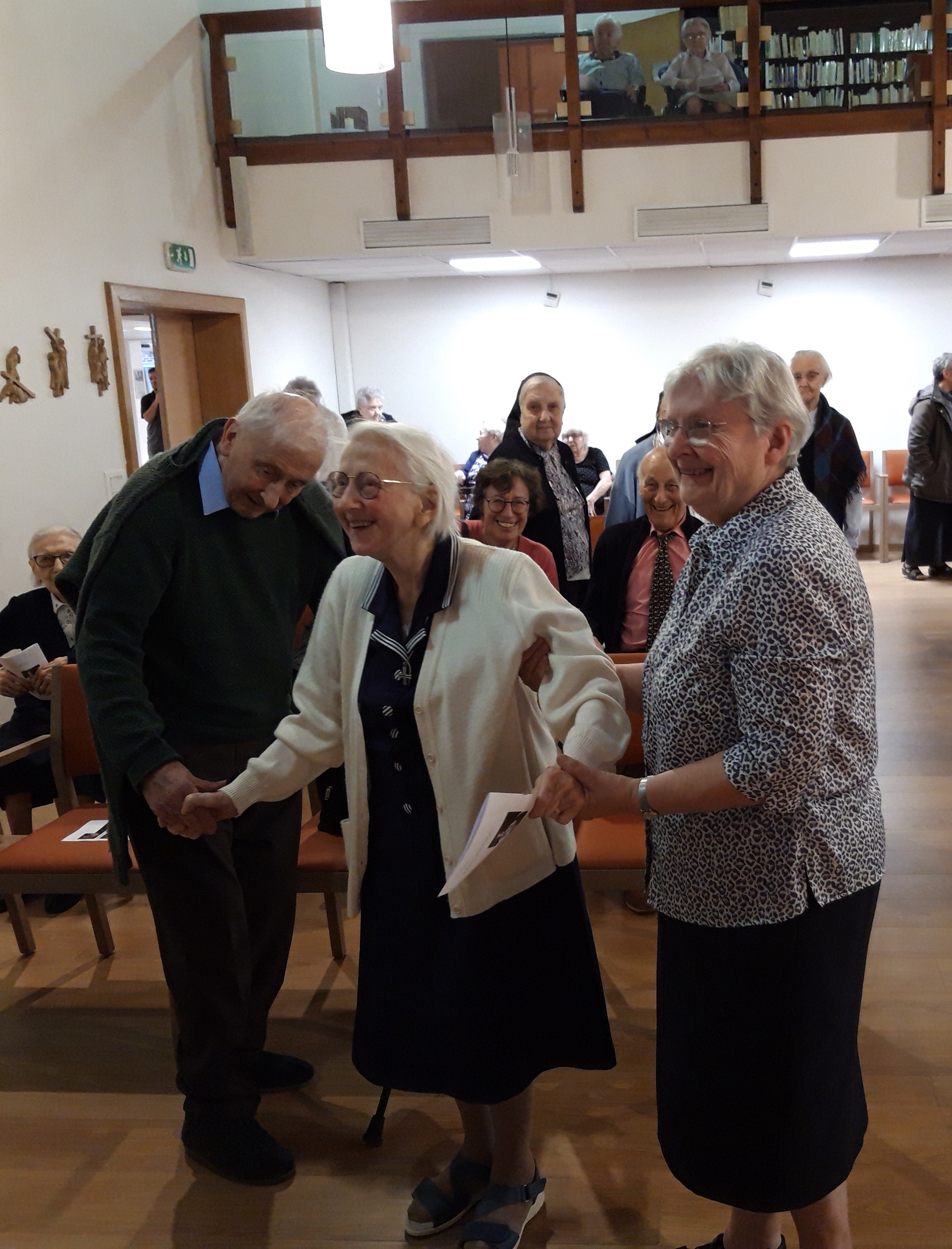 Ce 23 octobre 2023, au « Clairval » à Pondrôme, la chapelle, fleurie aux couleurs d’automne, se remplit de nouveaux visages car ils sont nombreux à accourir pour fêter notre centenaire, sœur saint Damien Authelet. Famille, amis, sœurs et laïcs résidents viennent de tous côtés pour entourer notre sœur dans cette nouvelle étape de sa vie. Celle-ci apparaît, souriante, aux bras de sœur Marthe et de sœur Marie-Ghislaine. La messe est présidée par l’abbé Haquin dont l’homélie rappelle le sens de la bénédiction à recevoir et à donner. L’évangile du semeur évoque la riche moisson engrangée par sœur Saint Damien tout au long de sa vie de service donnée au Seigneur.