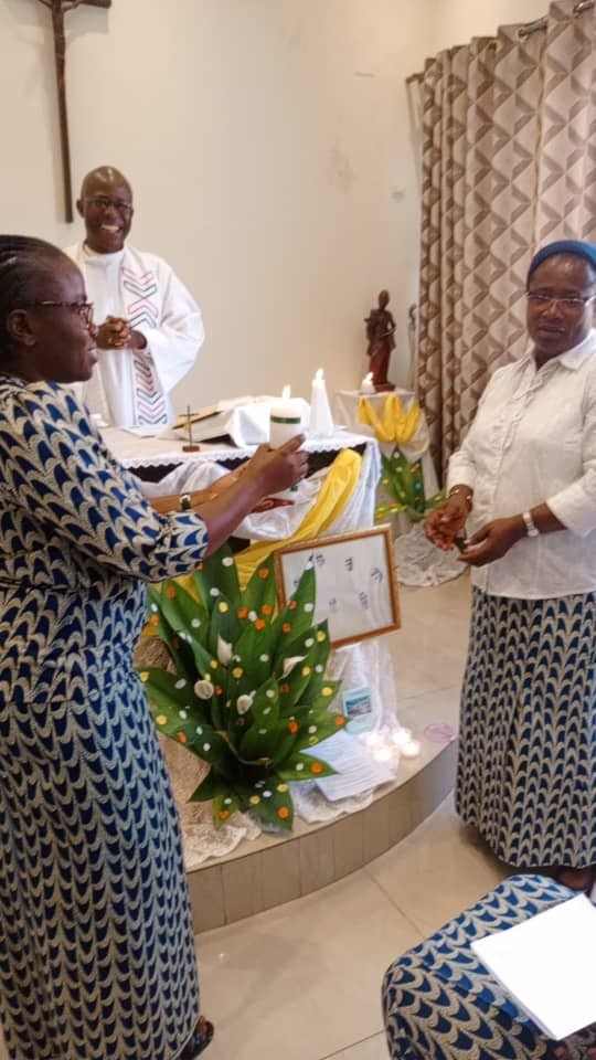 Le dimanche 27 octobre 2024, au cours d’une messe d’action de grâce, la communauté de Kinshasa, au nom de toute la Région a entouré nos deux sœurs : Sr Albertine (la Supérieure régionale sortante) et Sr Félicita actuelle Régionale.