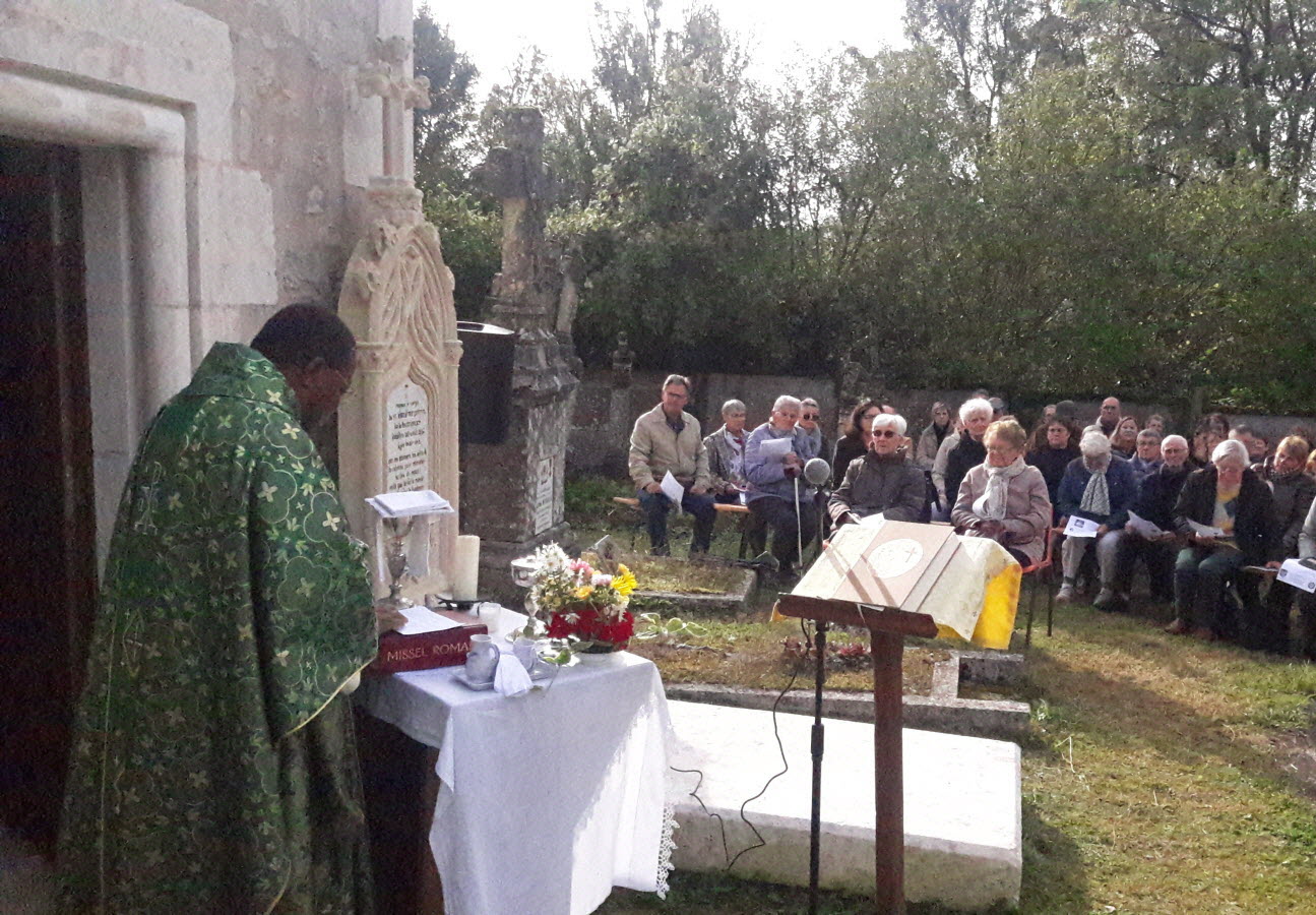 Après la messe célébrée par le Père Alphonse dans le cimetière même, et le discours du maire que l'on sentait heureux de notre présence, le verre de l'amitié nous permettait d'échanger avec les uns et les autres.